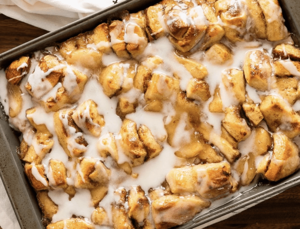 - Once the casserole is done, drizzle the reserved icing packets over the top while it’s still warm.